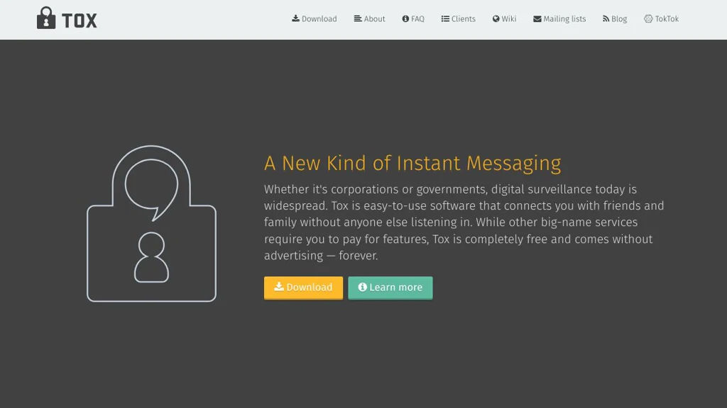 Tox is a peer-to-peer (serverless) communication network and protocol used by messaging clients to provide private conversations without relying on central servers. It focuses on end-to-end encrypted chat and real-time audio/video features while keeping user identities based on cryptographic keys.