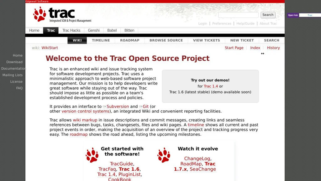 Trac is well-suited to teams that want a straightforward, self-managed environment for tickets and documentation with strong cross-referencing to source control activity. Its minimalism and extensibility make it a practical choice for organizations that prefer adapting tools to existing processes rather than adopting rigid workflows.