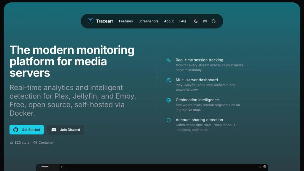 Tracearr is well-suited for administrators who want unified visibility across multiple media servers, with both operational analytics and security-oriented sharing detection. It combines real-time monitoring with historical reporting to help keep streaming performance and access behavior under control.