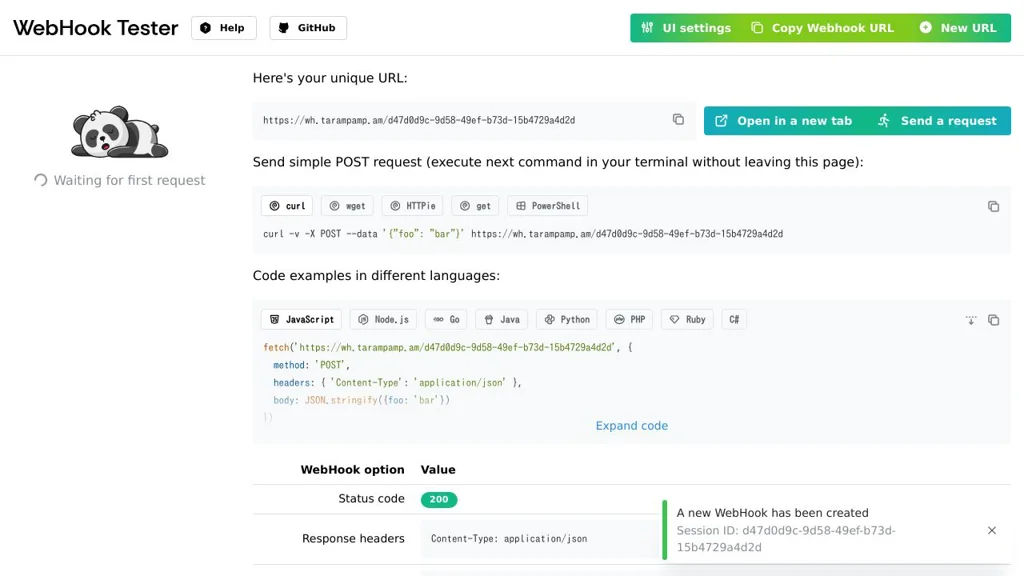 Webhook Tester is a self-hosted application for receiving, inspecting and debugging HTTP requests and webhooks. It generates unique session URLs, records incoming requests, and provides a lightweight web UI with real-time notifications.