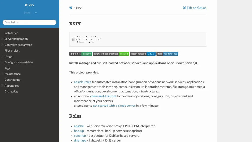 xsrv is intended for users who prefer infrastructure-as-code and reproducible Ansible-driven deployments for self-hosting. Its modular role approach makes it suitable for incremental adoption and custom configurations.