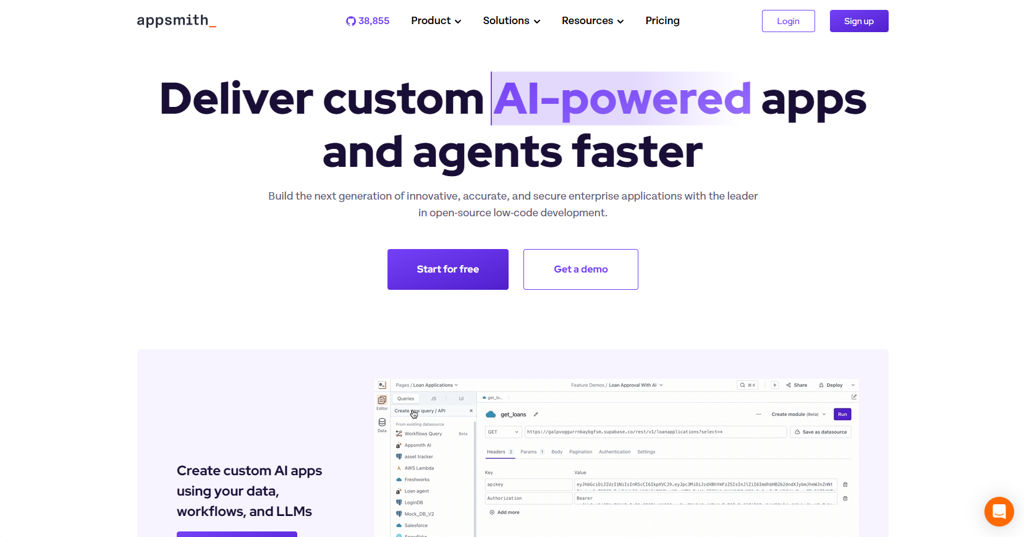 Appsmith is an open-source low-code platform for building internal tools such as admin panels, CRUD apps, dashboards, and workflow apps. It provides a browser-based editor to compose UIs, connect to data sources, and write logic with JavaScript, then deploy apps with access controls.