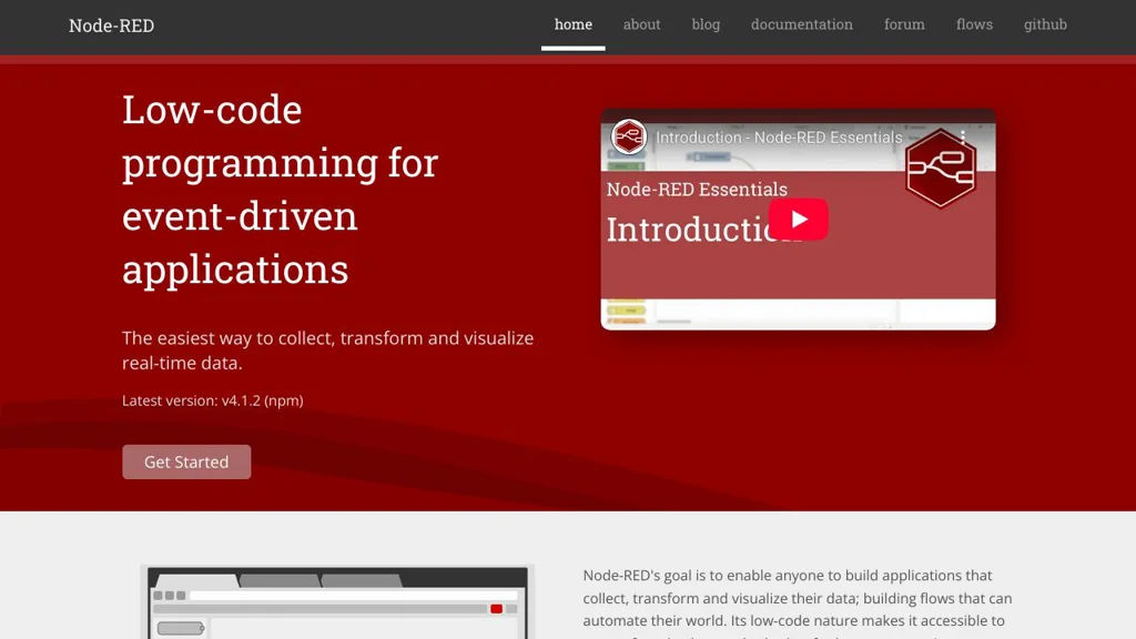 Node-RED is a flow-based development tool for building event-driven applications by wiring together “nodes” in a browser-based editor. It provides a Node.js runtime that executes flows and integrates with devices, APIs, and online services via a large ecosystem of community-contributed nodes.