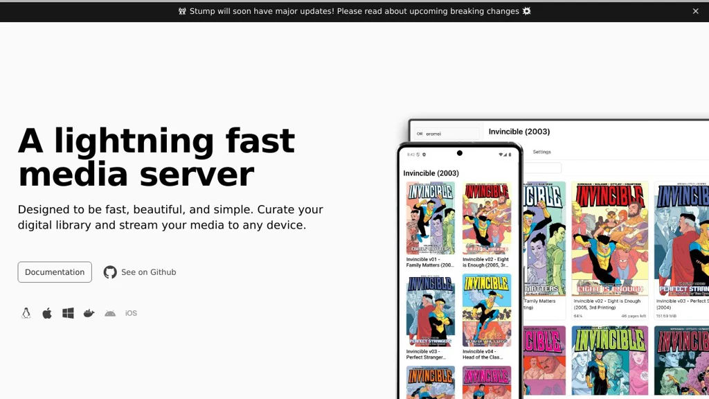 - Replace hosted streaming platforms by serving a private home media library to TVs and phones