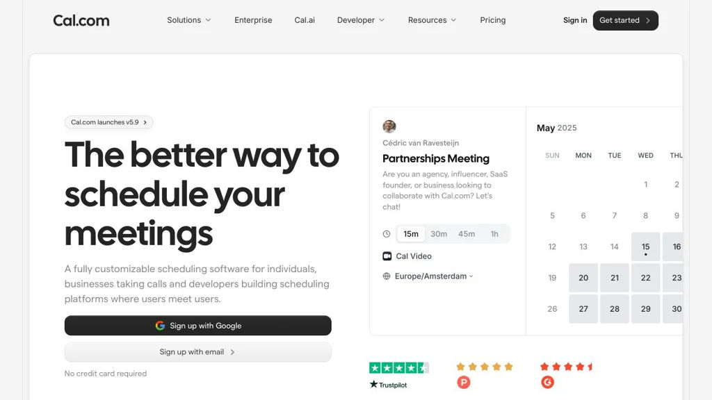 Cal.com is well-suited for organizations that want full control over scheduling UX and data while integrating with existing calendar and conferencing ecosystems. Its embeddable approach and team scheduling options make it useful both as a standalone scheduler and as scheduling infrastructure inside other products.