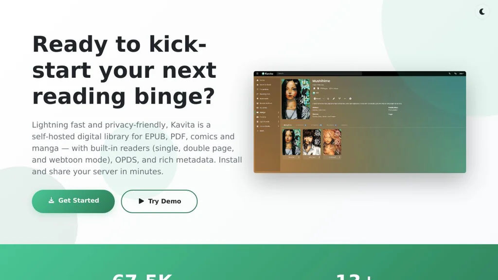 Kavita is a self-hosted digital library server focused on reading and managing manga, comics, and ebooks from a browser. It scans folders into a structured library, enriches items with metadata, and provides a responsive reader experience for individuals, families, or small groups.