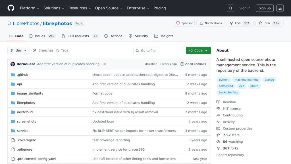LibrePhotos is a self-hosted photo management and gallery application designed to help you organize and explore large personal photo libraries. It focuses on fast browsing and AI-assisted discovery (people, objects, locations) while supporting multiple users and common photo/video workflows.