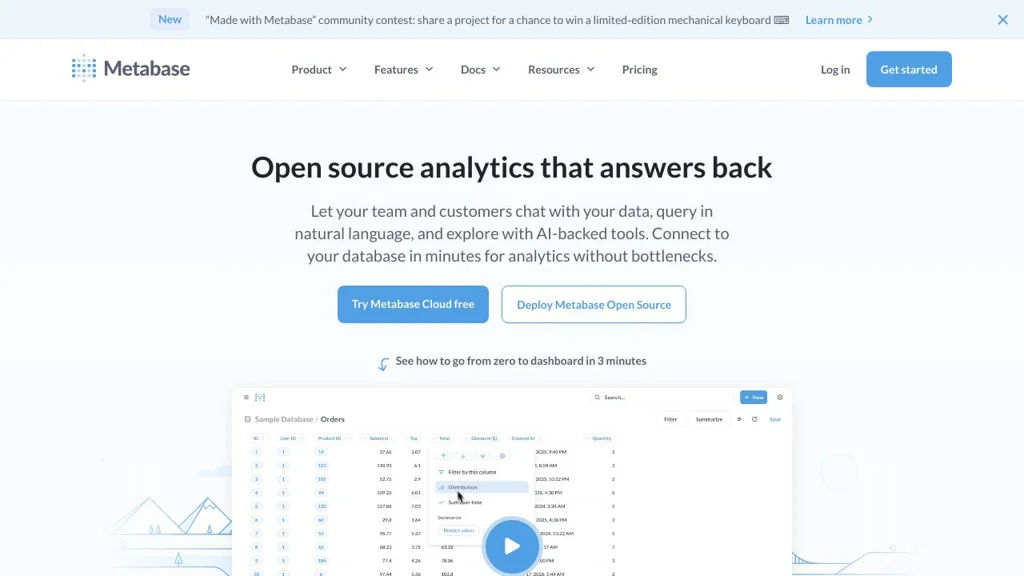 Metabase is well-suited for teams that want fast time-to-value analytics with both no-code exploration and SQL power. It provides a pragmatic middle ground between lightweight charting tools and heavyweight enterprise BI suites, while remaining deployable on your own infrastructure.