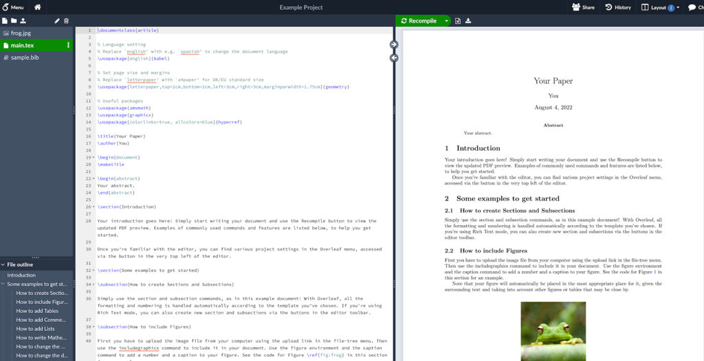 - Template-based project creation (common paper formats and journal/conference styles)