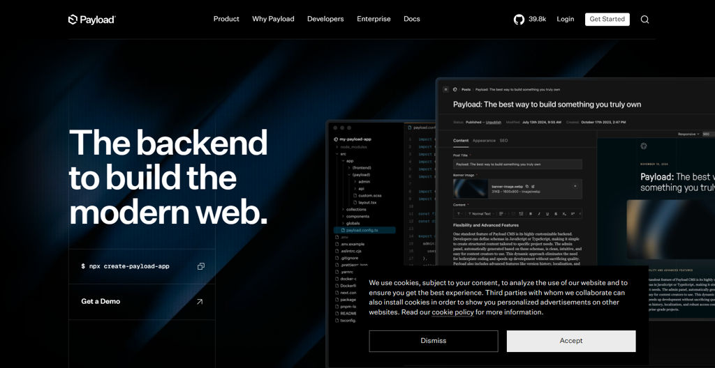 Payload is a TypeScript-first headless CMS and application framework built on Node.js, designed to power content-driven websites and products with a fully customizable admin UI and developer-friendly APIs. It models your data as code, generates REST/GraphQL endpoints, and supports rich content editing, media, and granular access control.