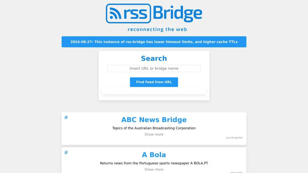 - Feed quality depends on each bridge’s scraping logic; upstream website changes can break individual bridges