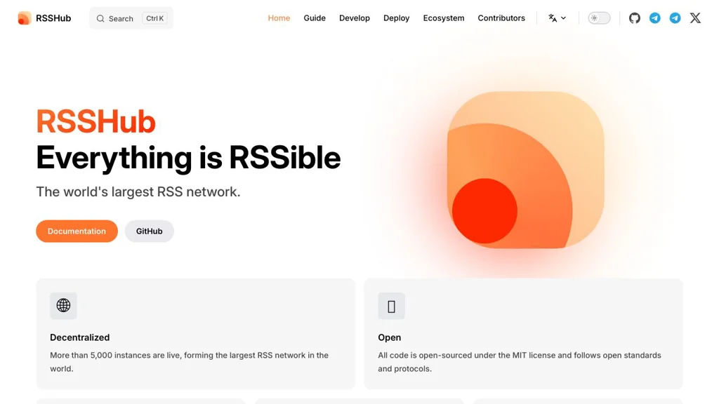 RSSHub is a good fit if you want a single, self-controlled service that can produce standards-based feeds from many sources and be extended to match your own content needs. It is commonly paired with an RSS reader or automation tools to consume the generated feeds.