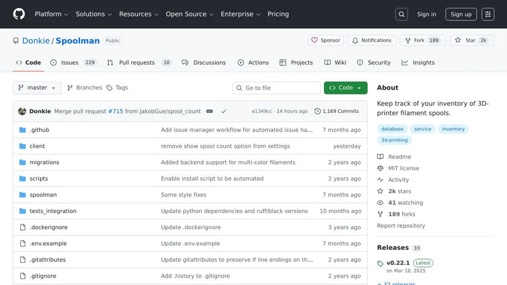 Spoolman is a practical companion service for makers who want structured filament data and an accessible UI/API to connect inventory with their 3D printing workflow.