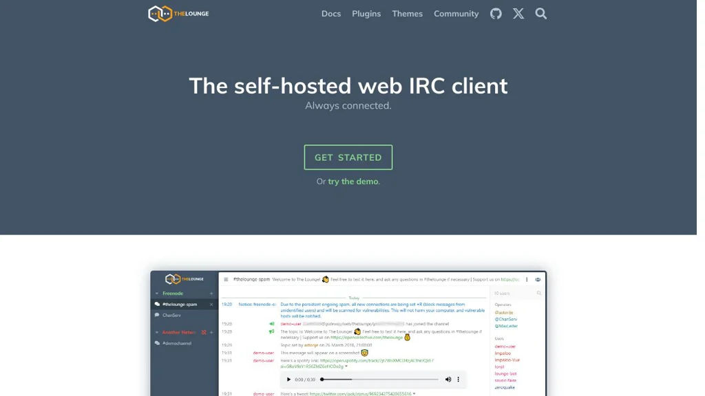 It is commonly used by IRC communities and teams that want a polished, persistent web interface without relying on third-party hosted IRC web clients. The Lounge balances a modern UX with traditional IRC concepts, and is extensible for advanced deployments.